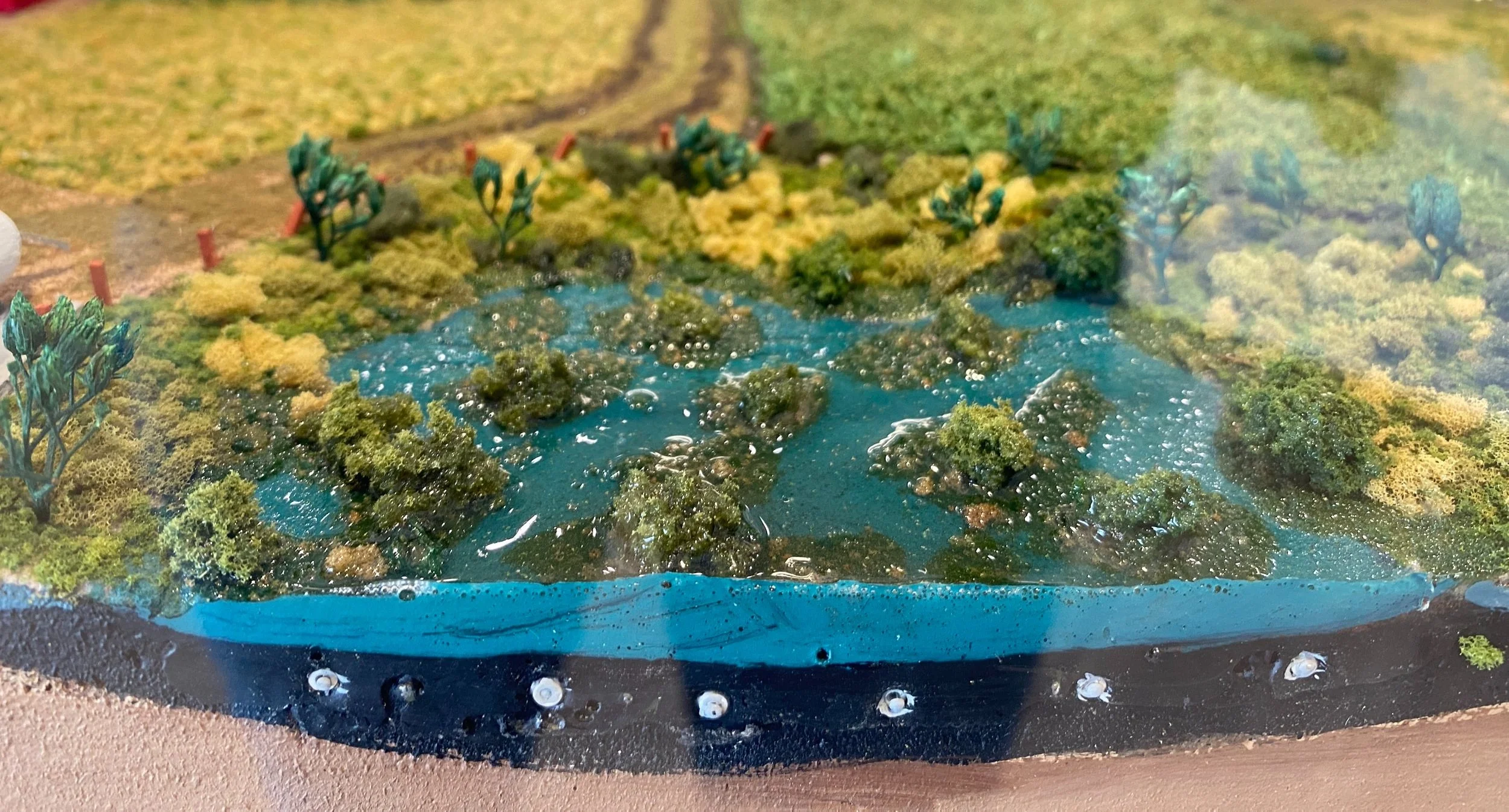 The wetland area, which was farmed in the past, has been restored by plugging the drainage tile under it. Wetlands are natural filters for water pollutants and sediment from soil erosion. Wetlands also act like sponges and soak up excess water, preventing flooding.
