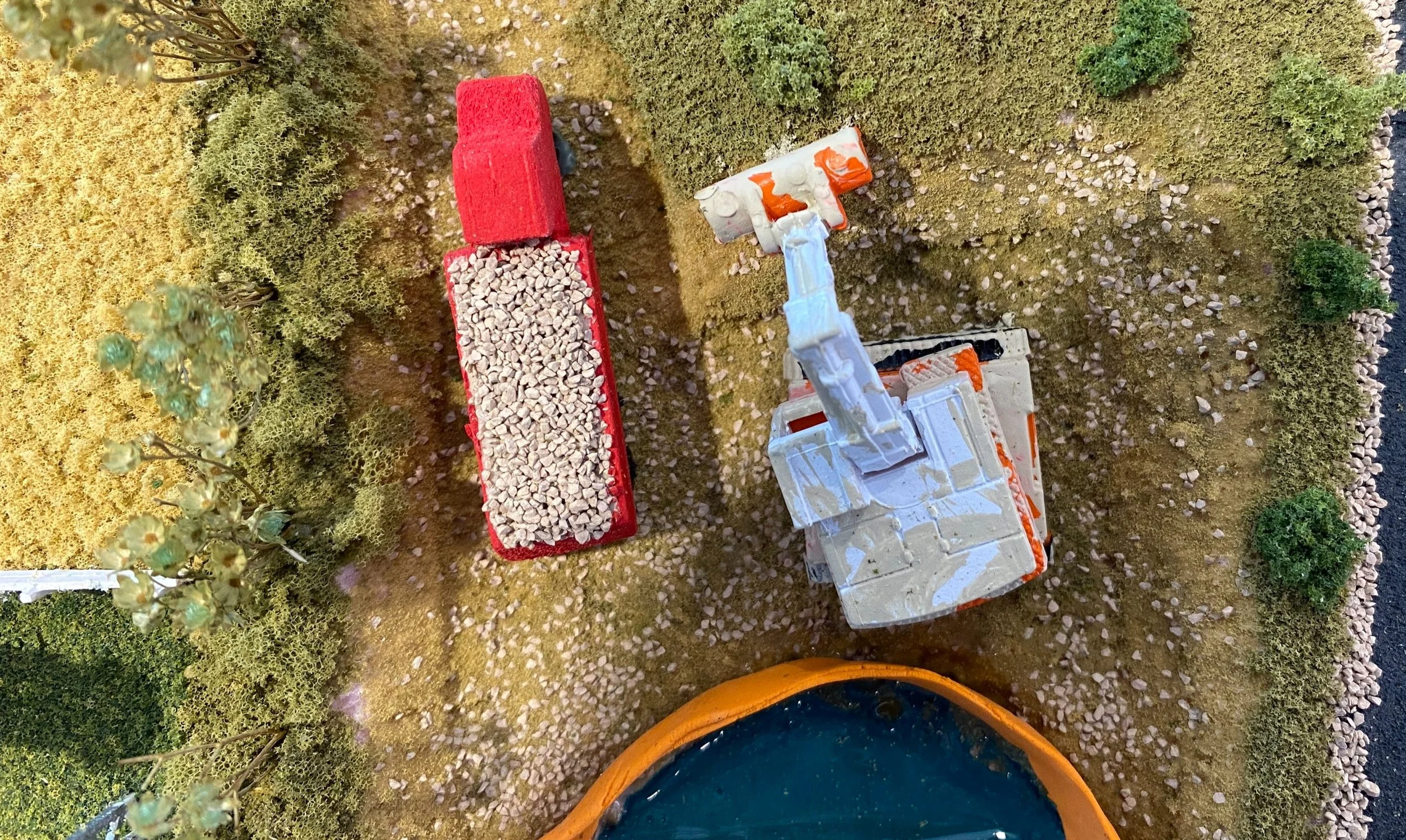 An orange silt fence has been installed at the mine to prevent the exposed soil from being eroded into the water. Stormwater pollution prevention practices like silt fences should be used at mines and construction sites to prevent sediment and other contaminants from running off site and polluting our water.