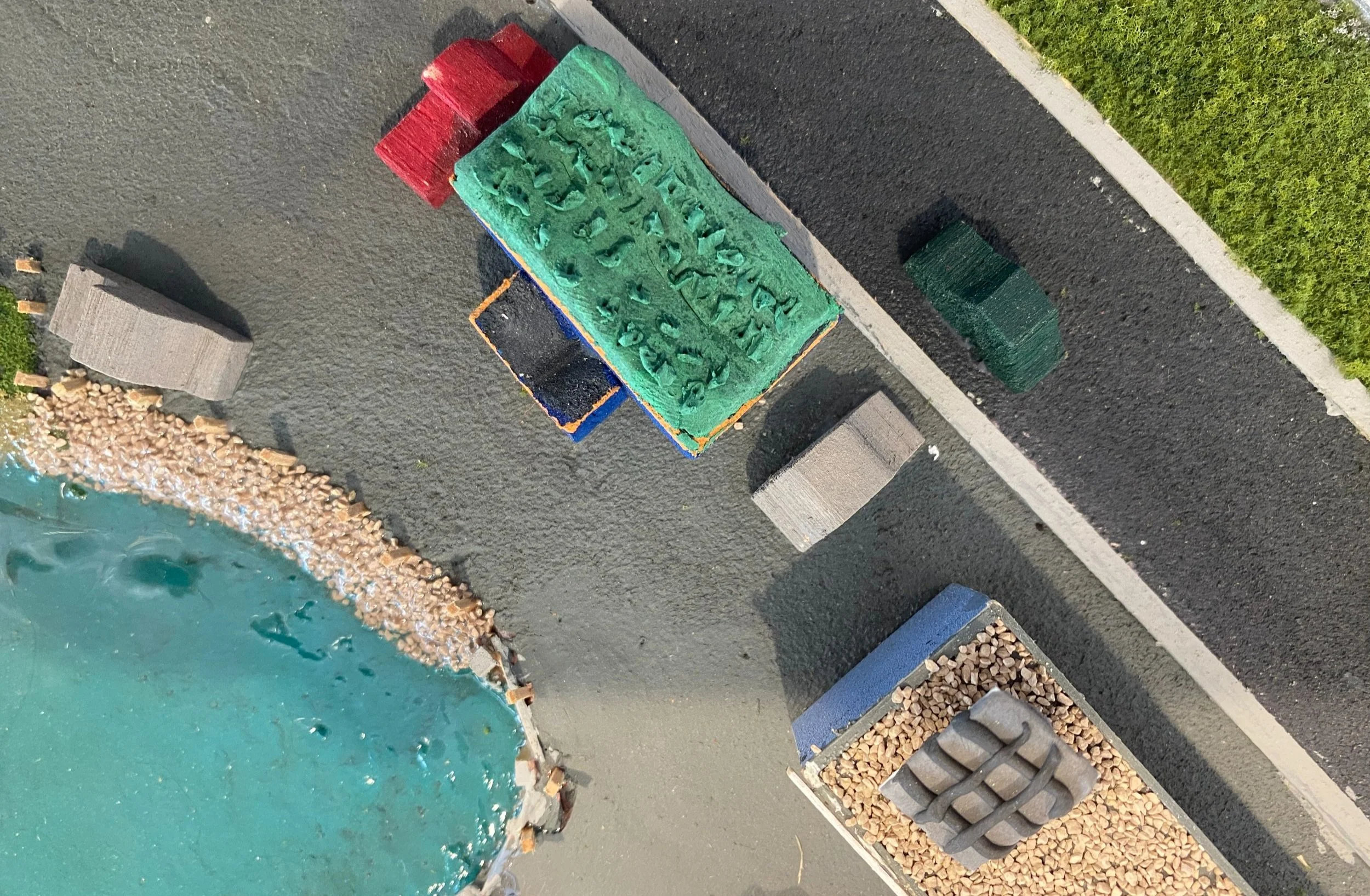 The blue building next to the shopping center has a green roof. A green (planted) roof can absorb heat from the sun, lowering roof and surrounding air temperatures. Green roofs also help improve water quality by absorbing rainwater rather than allowing it to run off the roof.